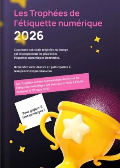 Le 19 mars à l'occasion du Forum Etiq&Pack de l'Etiquette numérique dont le thème est "Du numérique à l'automatisation" et qui se tiendra à l'Ecole Estienne à Paris, seront décernés les Trophées de l'étiquette numérique 2026. Il vous faut envoyer vos dossiers avant vendredi !